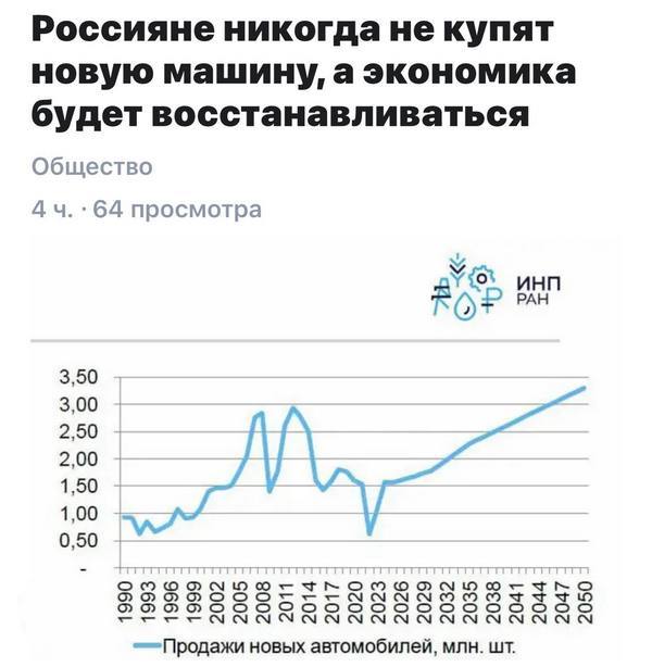 По мнению экспертов, возможность покупки автотранспорта вернётся к уровню 2012 года только к 2045 году. Новые машины жители страны станут покупать лишь тогда, когда восстановится экономическая ситуация. Доходы населения до сих пор не набрали былого уровня 2014 года, а заметный рост возможен только к 2045 году.